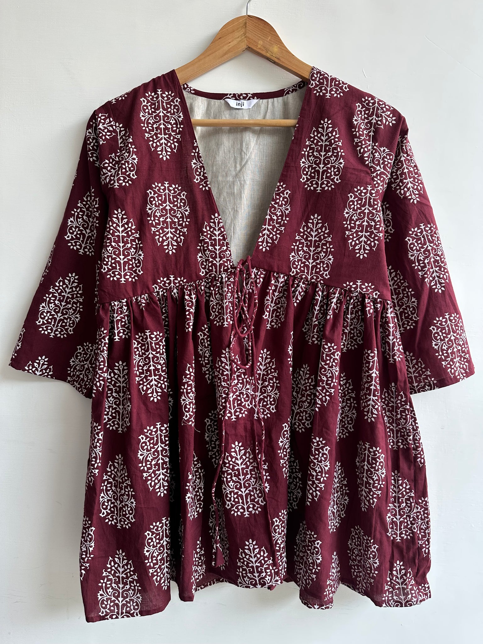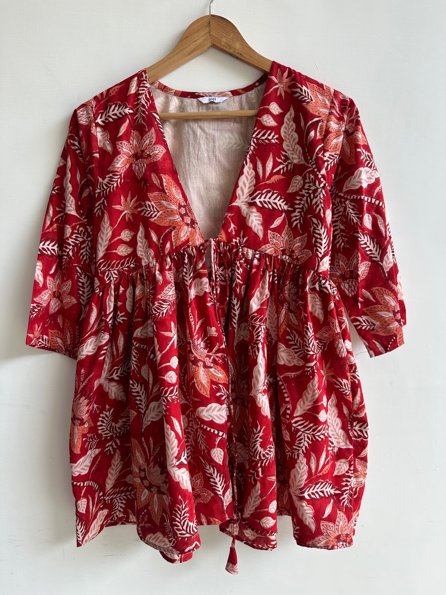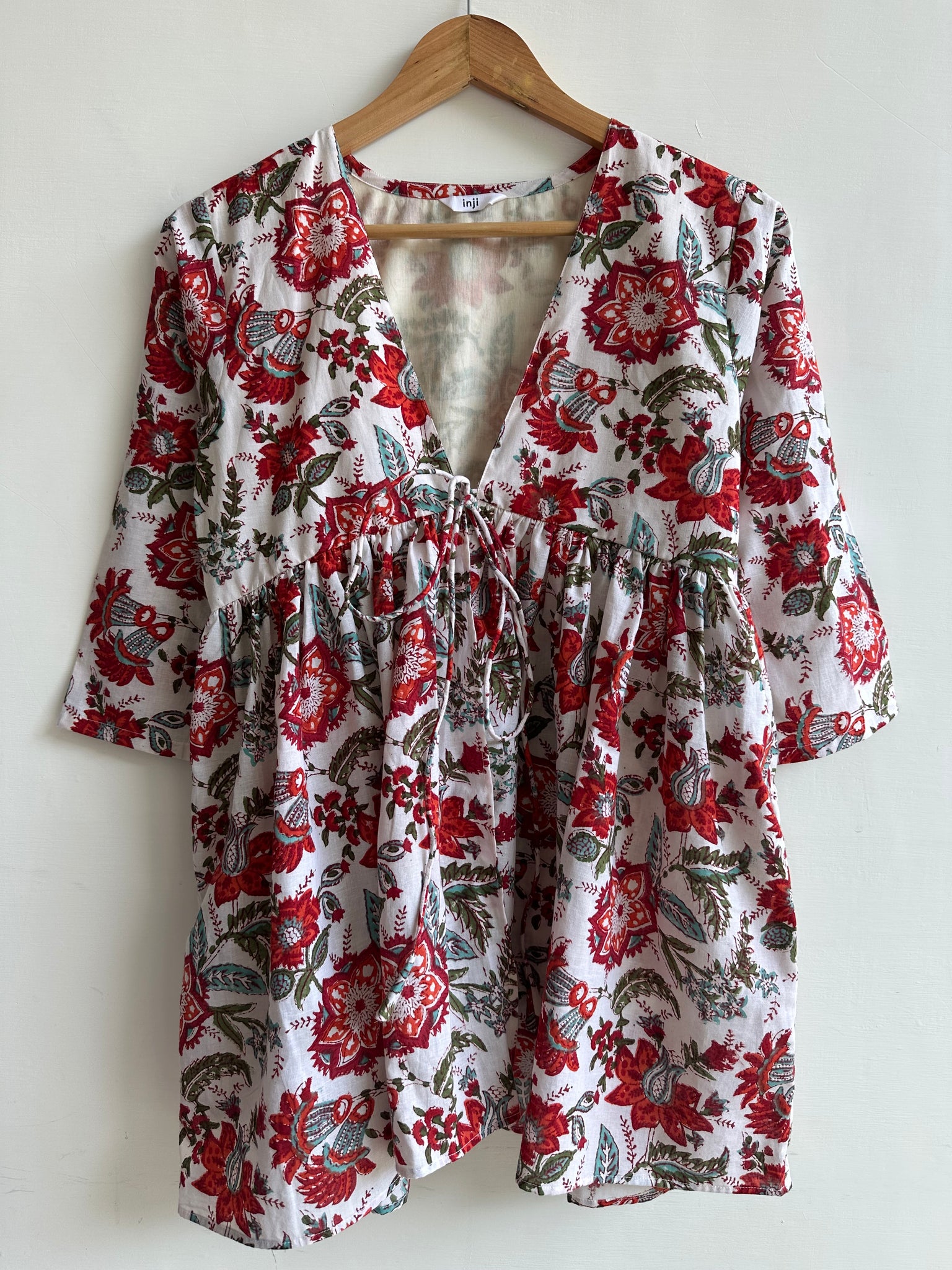 Material: Cotton Sleeve Type: Tie Straps Fit Type: Loose fit Length : 35-36” Fabric composition: 100% Cotton, hand block printed...