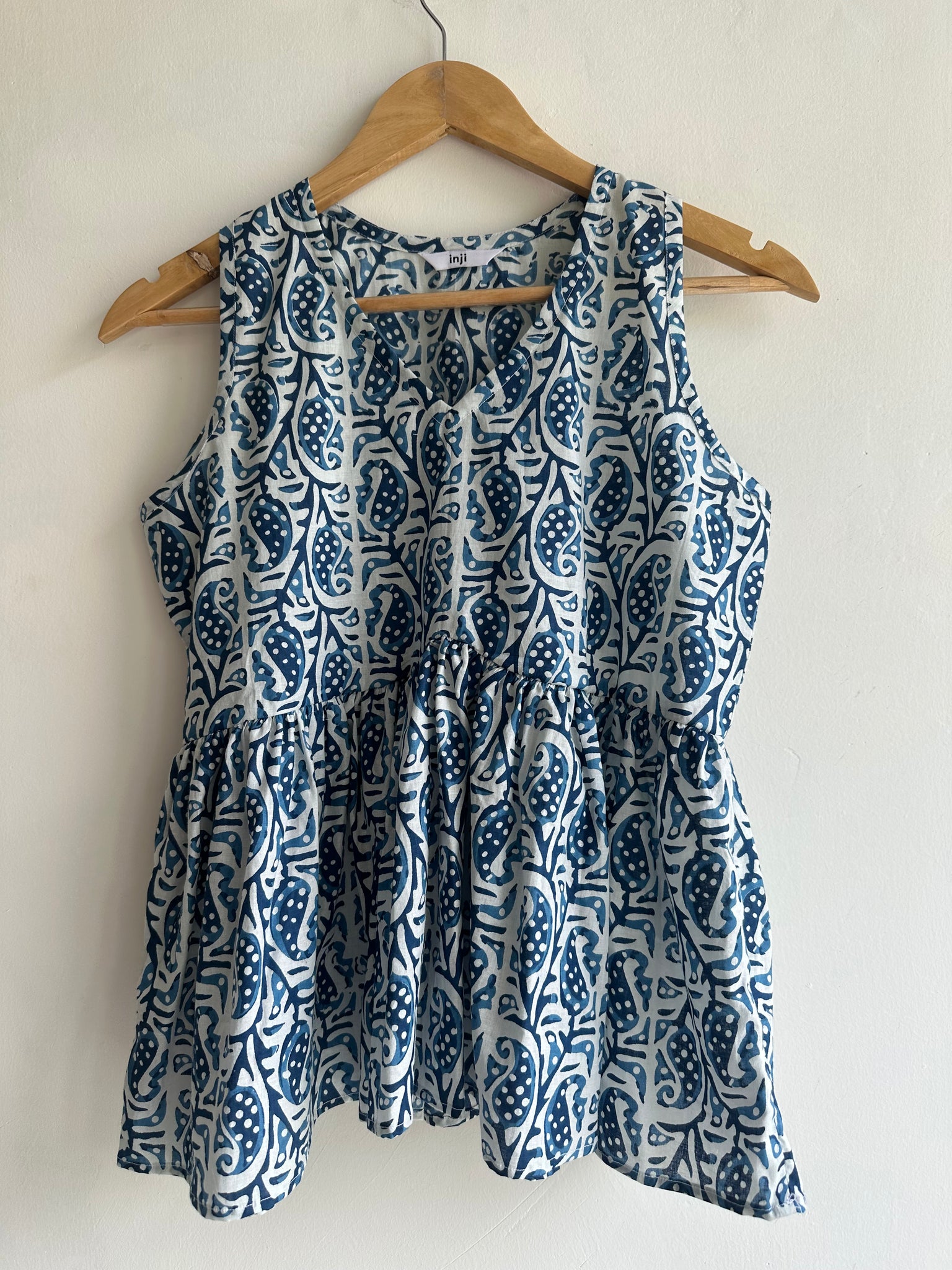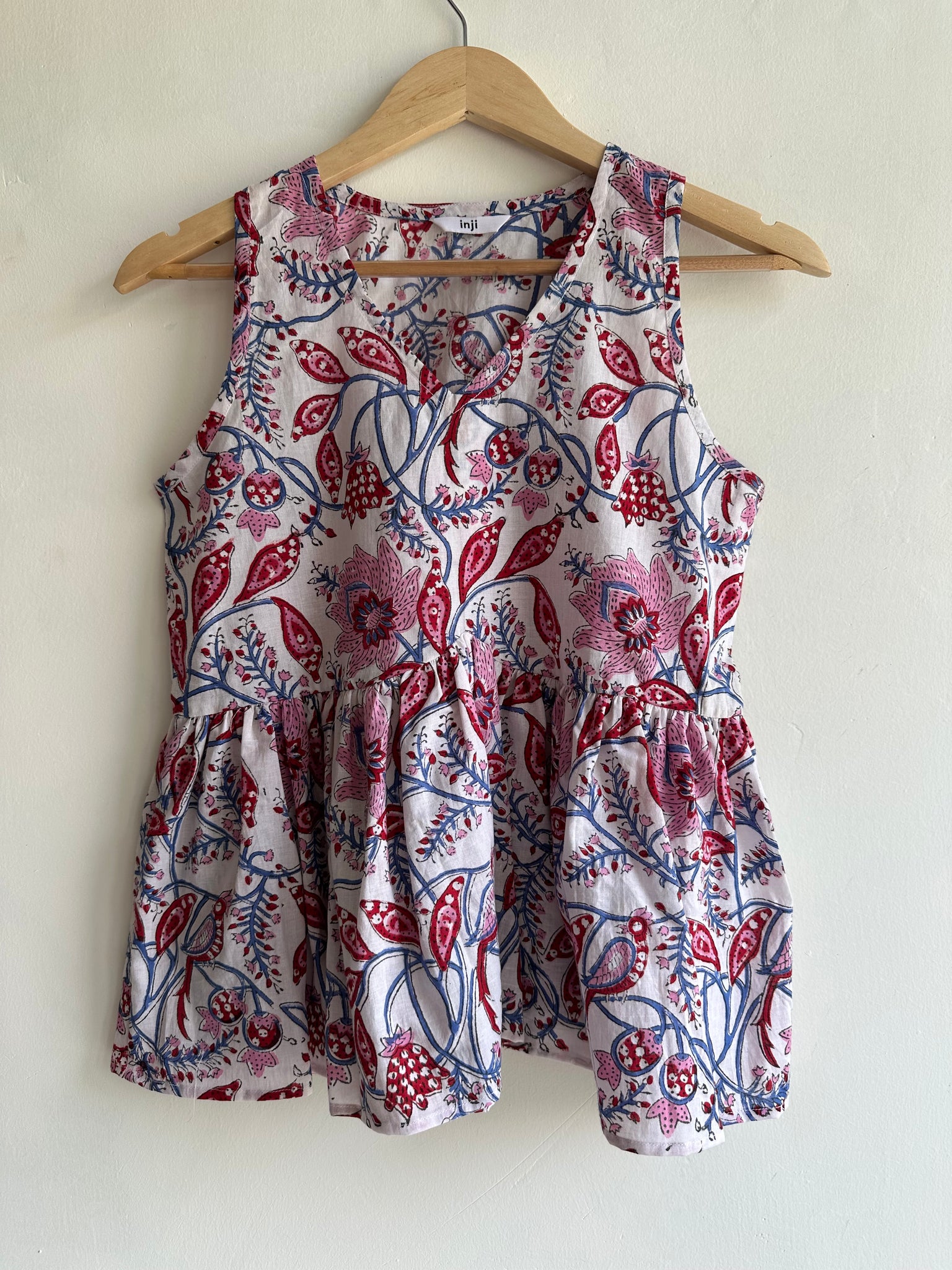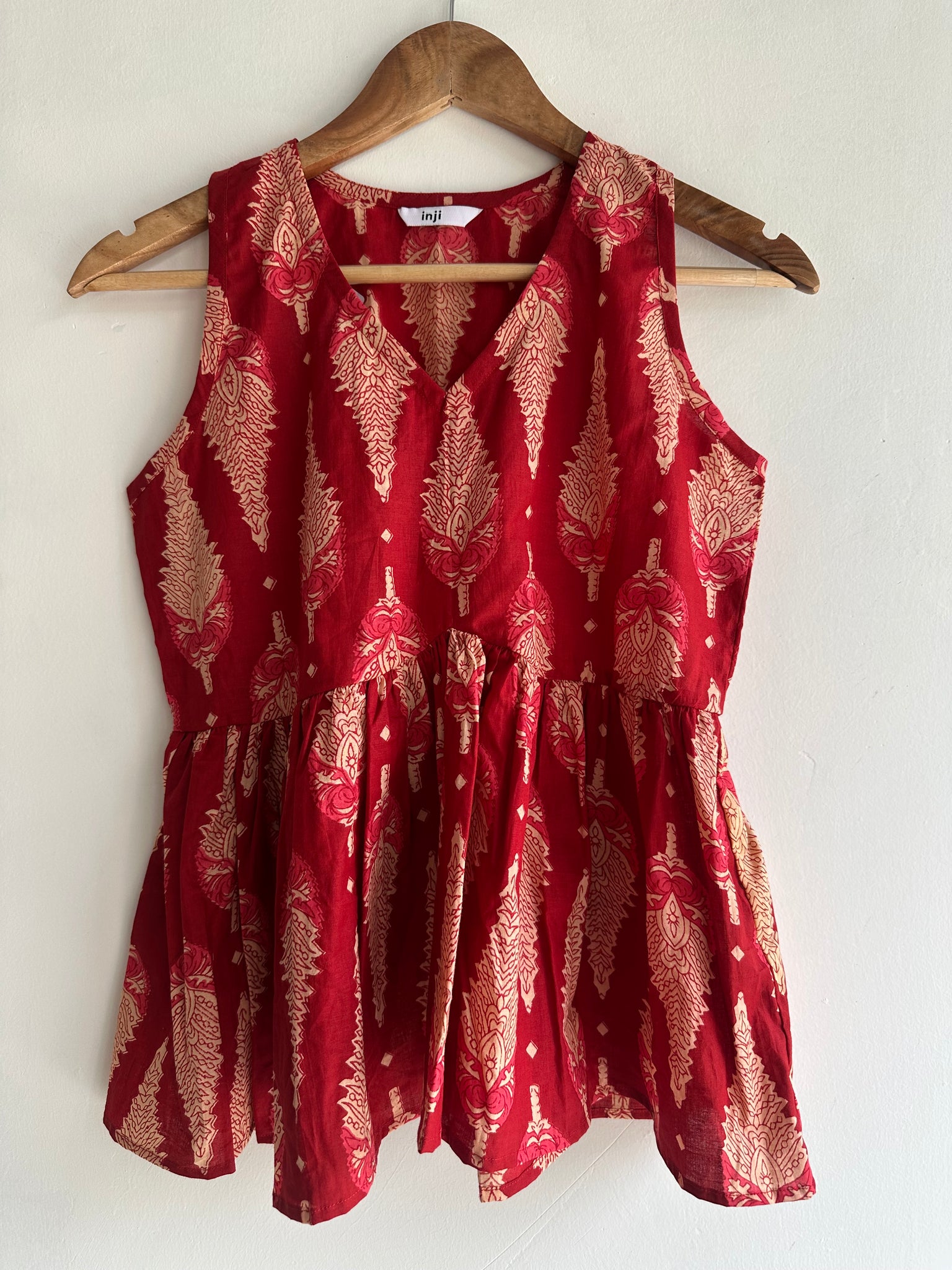 Material: Cotton Sleeve Type: Sleeveless Fit Type: Regular Fabric composition: 100% Cotton, hand block printed Components: 1N Kurta Length- 30"...