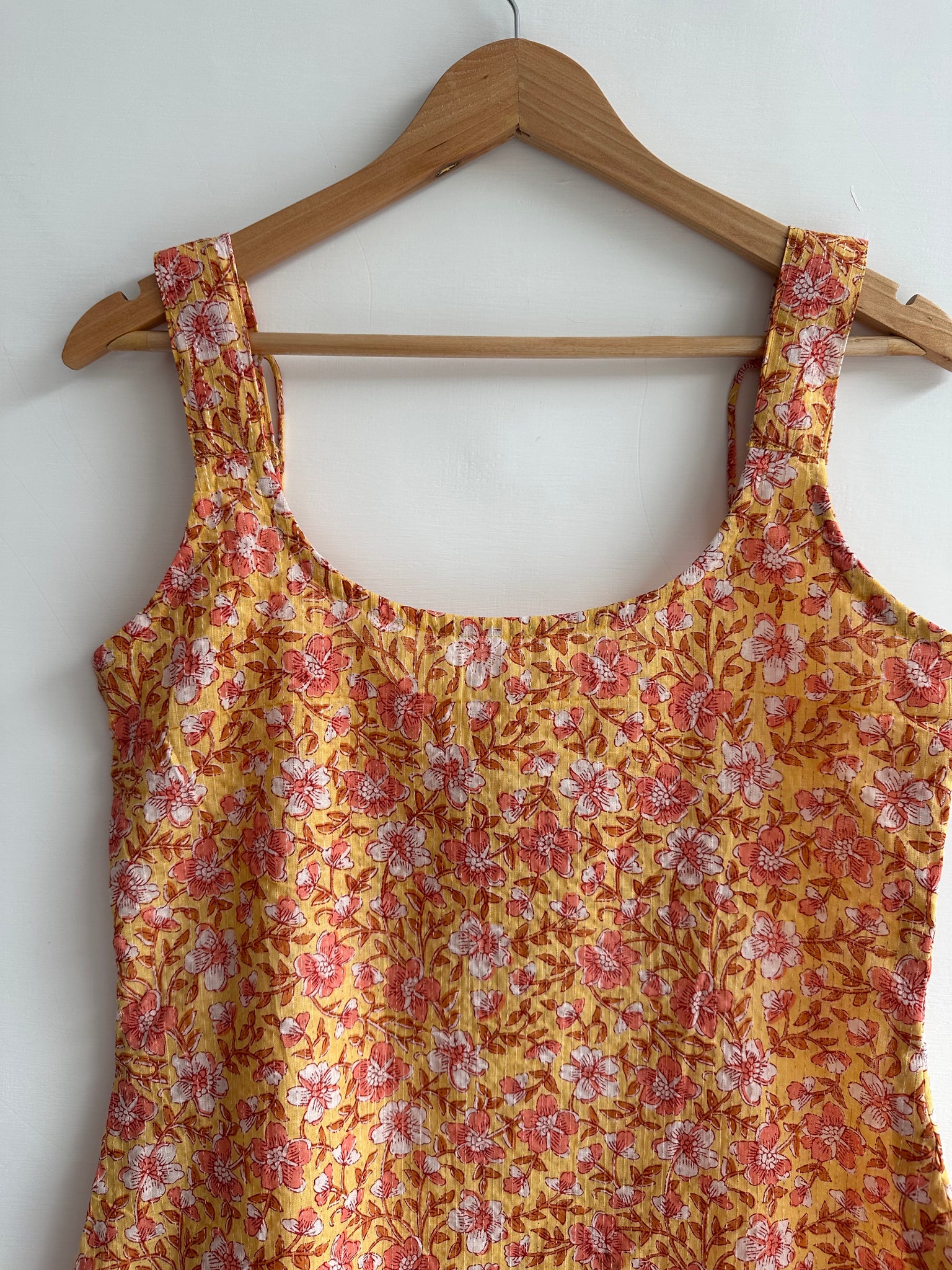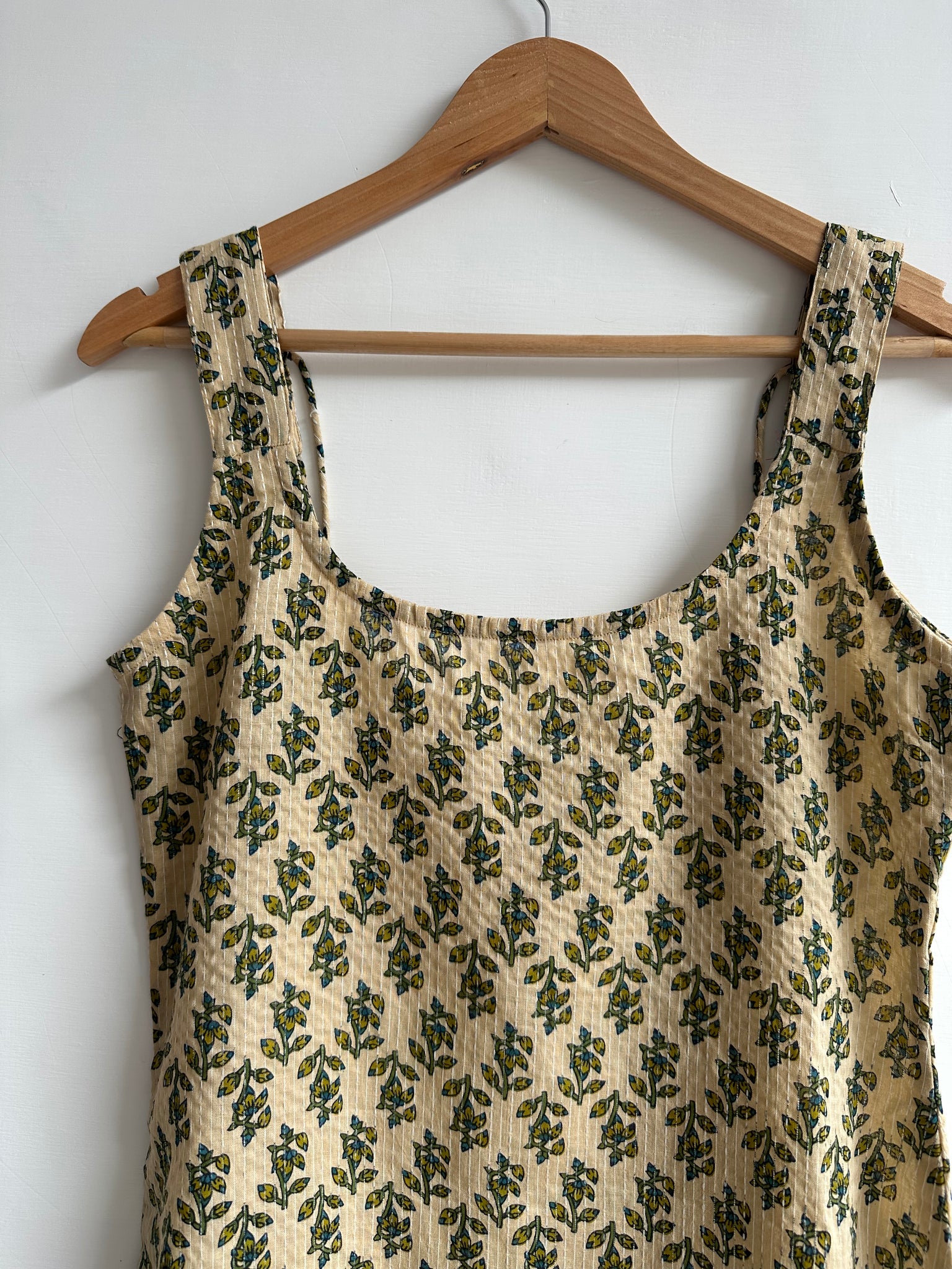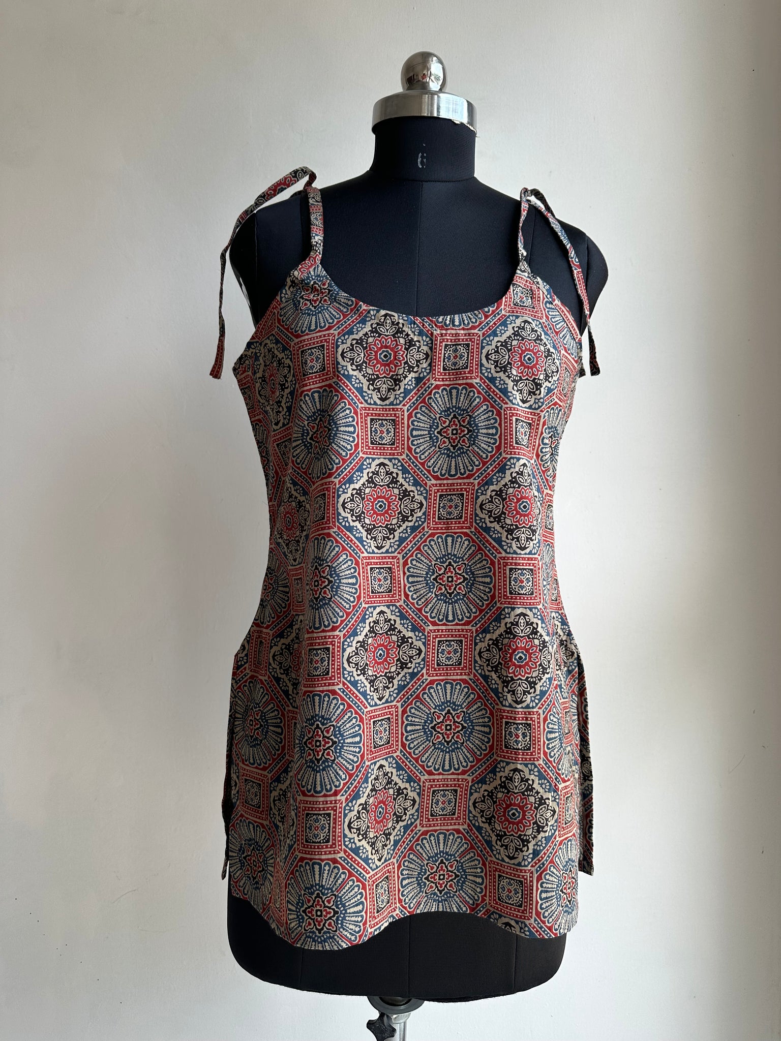 Material: Cotton Sleeve Type: Sleeveless Fit Type: Flared on the waist Fabric composition: 100% Cotton, hand block printed Components: 1N...